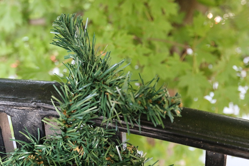 - Attach the middle of the garland to the fence between the beginning and the end. This will create two equal-sized swags.